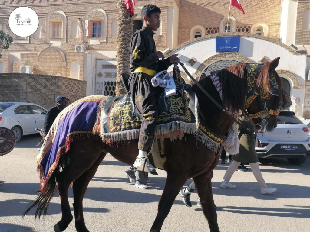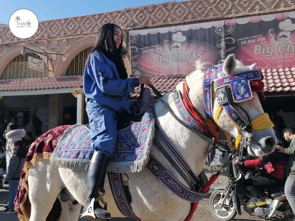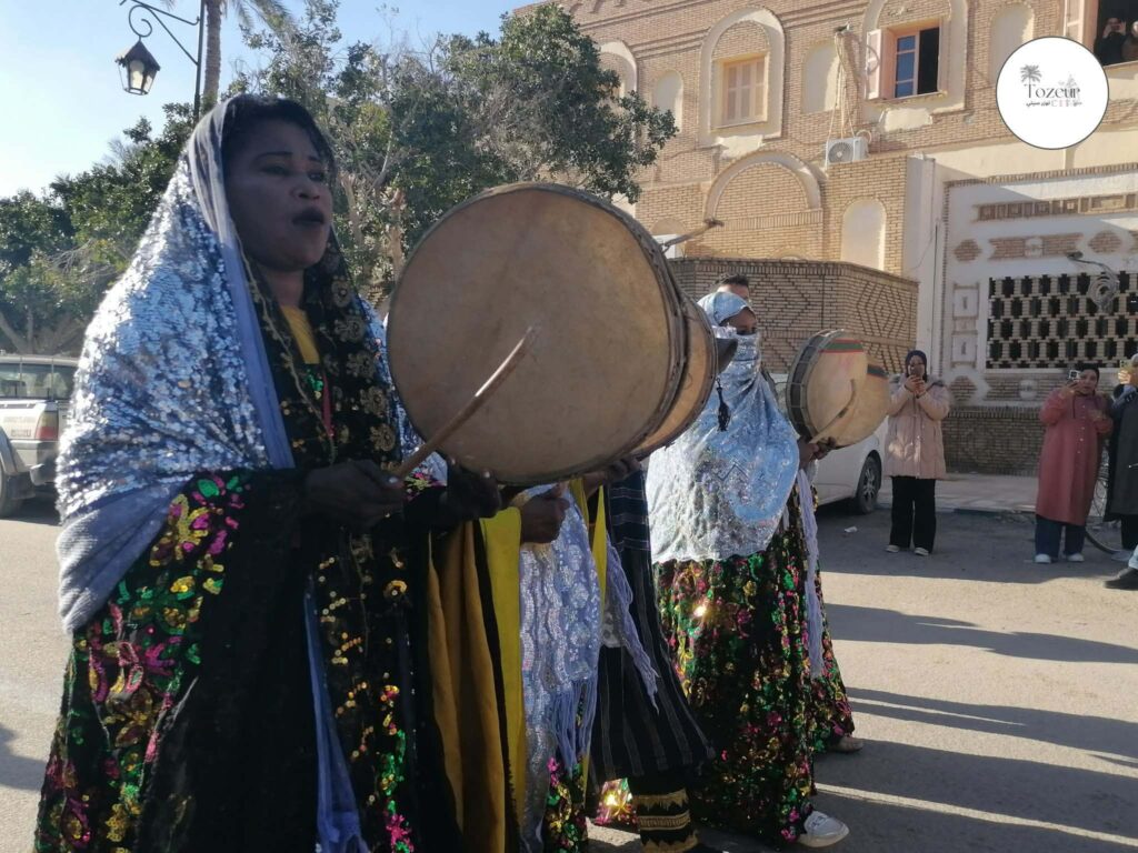 بعد أربعة أيام من الأفراح والإحتفالات والإبداع والإمتاع روت خلالها حاضرة الجريد توزر لضيوفها الذين تقاطروا عليها من مختلف جهات البلاد ومن خارجها ضيوف عرب وأشقاء من الجزائر وليبيا وسياح أجانب حكايتها الجميلة، ودّعت مدينة توزر يوم أمس الإثنين الجميع بالأحضان مثلما إستقبلتهم عند إنطلاق فعاليات مواكب أعراسها وأفراحها ولياليها الملاح بمناسبة إلتٱم مهرجان واحاتها الدولي في دورته 46. وقد إنطلقت مراسم توديع ضيوفها صباح يوم أمس الأثنين 29 ديسمبر بتنظيم إحتفالية فرجوية مخضرمة بعنوان “RUE magique” إنطلقت فعالياتها بداية من ساحة الولاية وتواصلت في أجواء عرسية متميزة مرورا بعديد الساحات العامة والشوارع الرئيسية لمدينة توزر إلى غاية الوصول إلى ساحة فلسطين بباب الهواء، بمشاركة ماجورات قصر هلال والفرق الفلكلورية والنحاسية والصوفيةوالفرسان.