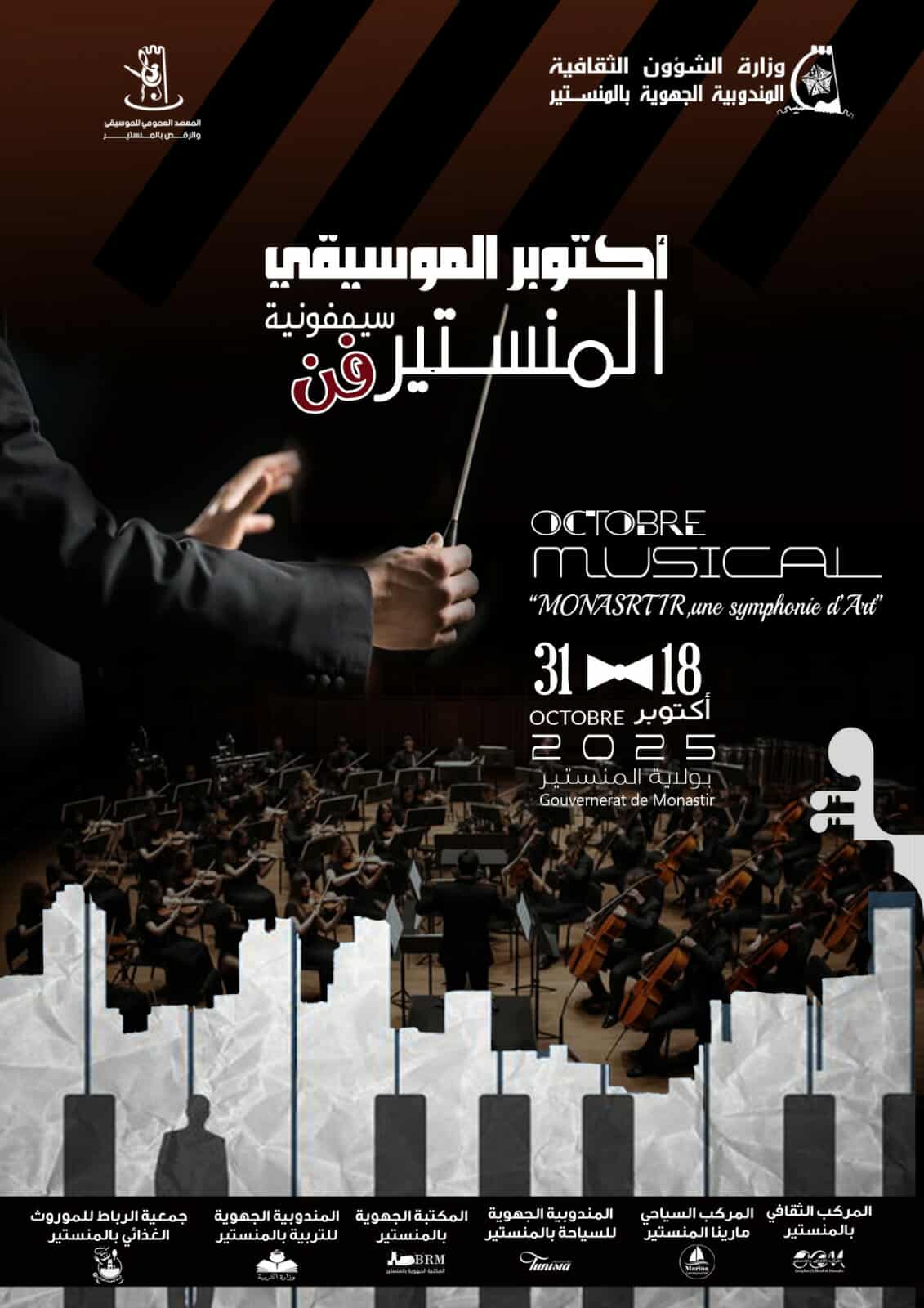 تعيش ولاية المنستير على إيقاع الفنّ الراقي خلال شهر أكتوبر 2025 من خلال تظاهرة “المنستير سيمفونية فنّ” التي تنظمها المندوبية الجهوية للشؤون الثقافية بالمنستير بالشراكة مع المعهد العمومي للموسيقى والرقص بالمنستير، في إطار الاحتفاء بشهر أكتوبر الموسيقي، لتكون هذه الدورة مناسبةً لتجديد اللقاء بين عشاق الموسيقى الكلاسيكية والفنّ السيمفوني من تونس وخارجها.