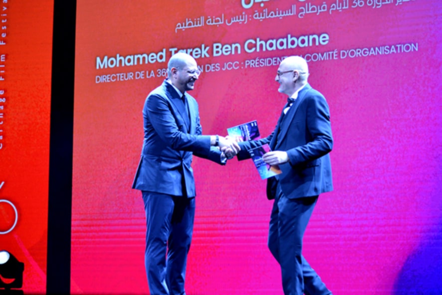 اعتلى مدير الدورة محمد طارق بن شعبان ركح مسرح الأوبرا ليرحب بالحضور وبضيوف الدورة معبرا عن فخر تونس وحرصها على المكانة التي تحتلها أيام قرطاج السينمائية بوصفها أعرق مهرجان عربي إفريقي يحتفي بالسينما وصنّاعها وبتلاقي الأفكار..في كلمته الافتتاحية، شدّد مدير ايام قرطاج السينمائية على خصوصية المهرجان وقدرته الدائمة على التجدد مع جمهوره، وعلى دفاعه عن سينما المؤلف، مستحضرًا مقولة زياد الرحباني «بلا ولا شي بحبك»، ومستأنسًا بما قاله مارتن سكورسيزيحول ضرورة عدم ترك الصناعة «تقتل السينما». وفي ختام كلمته، أعلن رسميًا افتتاح الدورة السادسة والثلاثين.