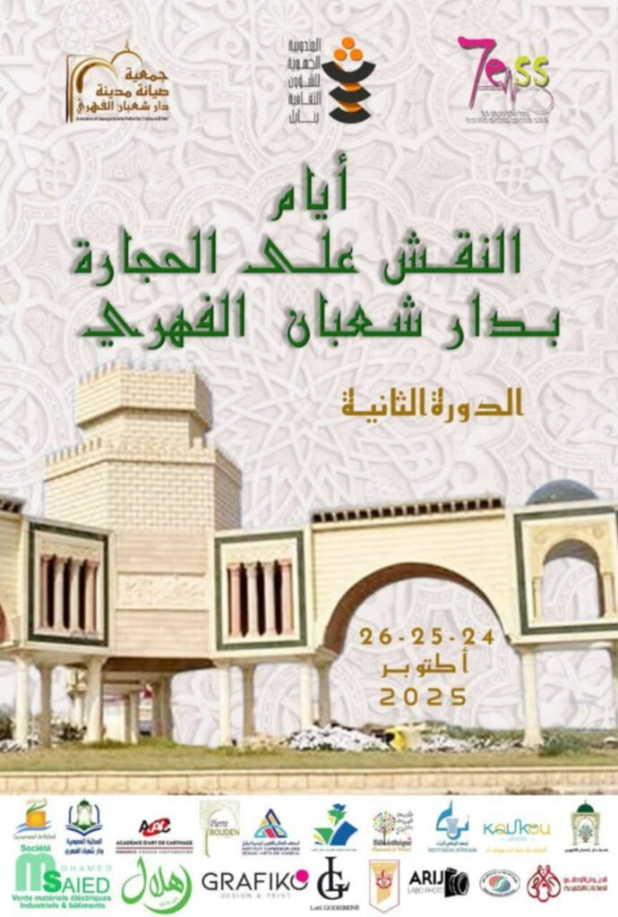 تشهد مدينة دار شعبان الفهري، تحت إشراف المندوبية الجهوية للشؤون الثقافية بنابل ، أيام 24- 25 و 26 أكتوبر 2025 انتظام فعاليات الدورة الثانية من أيام النقش على الحجارة التي تُقَام بالشراكة مع جمعية حسْ الثقافية التنشيطية الفنية و جمعية صيانة المدينة بدار شعبان الفهري، حيث تنطلق فقرات برنامج التظاهرة مساء الجمعة 24 أكتوبر بحديقة المكتبة العمومية بدار شعبان الفهري التي تشهد تدشين معرض:” زخرف على الحجر” الذي يتضمن عرض لأقدم النقوش والمنحوتات الحجرية بدار شعبان إثرها تفتتح الأيام بكلمات ترحيبية ثم تقدم مداخلة أولى بعنوان: “نقوش على نصب قدس بعل خمون في قرطاج ” للدكتور محمد حسين فنطر إثرها يتم تكريمه من طرف القائمين على التظاهرة. بعد ذلك يقع الإعلان عن مسابقة النقش على الحجر لفائدة طلبة المعهد العالي للفنون الجميلة بنابل.  وتنطلق في نفس الأمسية أشغال ملتقى حرف الإبداع والتشكيل متضمنا جملة من الورشات الحيٌة يؤمنها بعض حرفيٌ المهن من ذلك ورشة رسم للفنانين التشكيليين يتخللها تدشين معرض الصناعات التقليدية بفضاء دار الشباب بدار شعبان الفهري إلى جانب عرض ريبورتاج تلفزي بمقام سيدي عبد القادر بساحة الرحبة حول الدورة الاولى من مهرجان النقش على الحجر يتبعه شريط فيديو بعنوان:”ذاكرة..” من إعداد الطالبة: هاجر محرز ليفتح بعد ذلك باب النقاش للحاضرين.