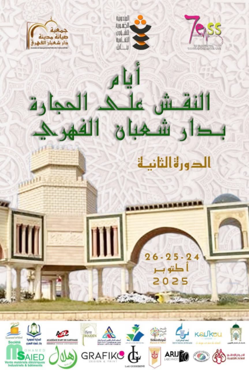 تشهد مدينة دار شعبان الفهري، تحت إشراف المندوبية الجهوية للشؤون الثقافية بنابل ، أيام 24- 25 و 26 أكتوبر 2025 انتظام فعاليات الدورة الثانية من أيام النقش على الحجارة التي تُقَام بالشراكة مع جمعية حسْ الثقافية التنشيطية الفنية و جمعية صيانة المدينة بدار شعبان الفهري، حيث تنطلق فقرات برنامج التظاهرة مساء الجمعة 24 أكتوبر بحديقة المكتبة العمومية بدار شعبان الفهري التي تشهد تدشين معرض:” زخرف على الحجر” الذي يتضمن عرض لأقدم النقوش والمنحوتات الحجرية بدار شعبان إثرها تفتتح الأيام بكلمات ترحيبية ثم تقدم مداخلة أولى بعنوان: “نقوش على نصب قدس بعل خمون في قرطاج ” للدكتور محمد حسين فنطر إثرها يتم تكريمه من طرف القائمين على التظاهرة. بعد ذلك يقع الإعلان عن مسابقة النقش على الحجر لفائدة طلبة المعهد العالي للفنون الجميلة بنابل.  وتنطلق في نفس الأمسية أشغال ملتقى حرف الإبداع والتشكيل متضمنا جملة من الورشات الحيٌة يؤمنها بعض حرفيٌ المهن من ذلك ورشة رسم للفنانين التشكيليين يتخللها تدشين معرض الصناعات التقليدية بفضاء دار الشباب بدار شعبان الفهري إلى جانب عرض ريبورتاج تلفزي بمقام سيدي عبد القادر بساحة الرحبة حول الدورة الاولى من مهرجان النقش على الحجر يتبعه شريط فيديو بعنوان:”ذاكرة..” من إعداد الطالبة: هاجر محرز ليفتح بعد ذلك باب النقاش للحاضرين.