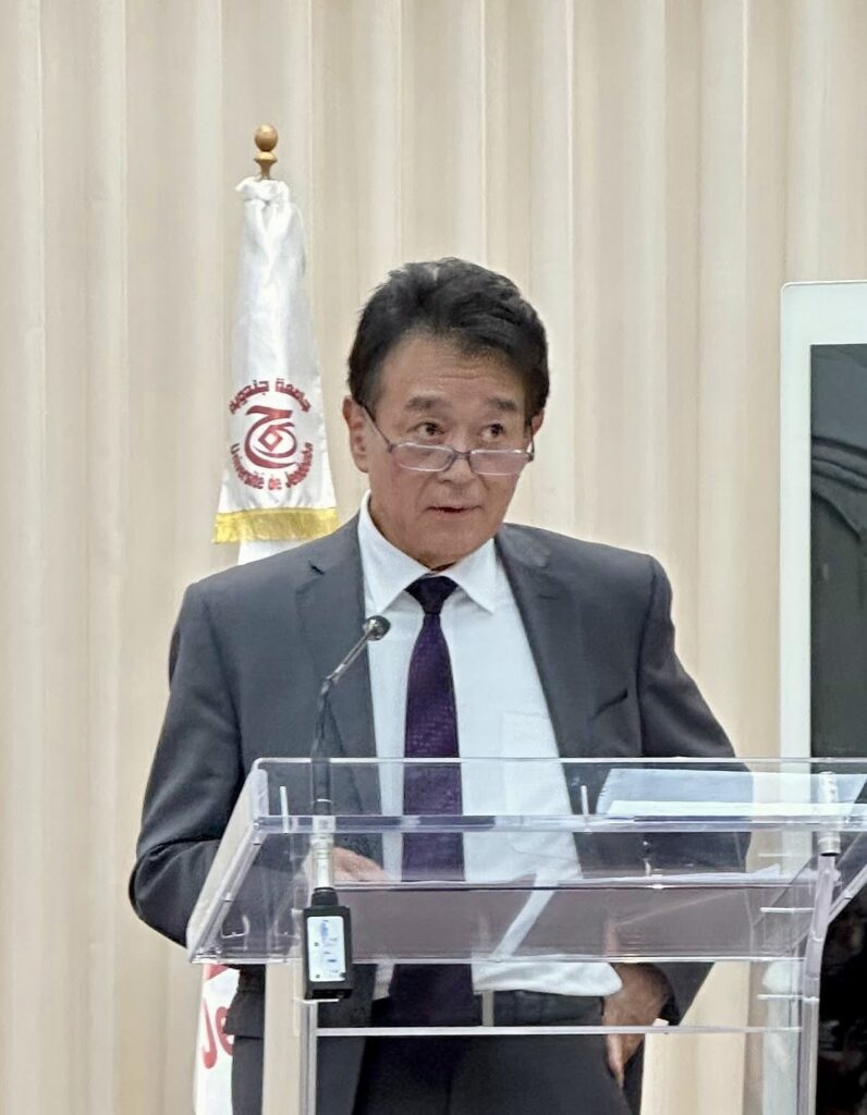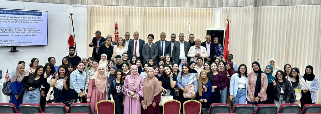 أدّى سفير اليابان ببلادنا أوسوغا بعد ظهر أول أمس الاثنين 20 أكتوبر زيارة الى مقر جامعة جندوبة توّجت بتقديمه لمحاضرة بعنوان “الذكرى الثمانون لنهاية الحرب العالمية الثانية: إعادة إعمار اليابان بعد الحرب وسياساتها الخارجية من أجل العالم بالسلام والازدهار”، وذلك لفائدة طالبات وطلاب المعهد العالي للعلوم الإنسانية وكلية العلوم القانونية والاقتصادية والتصرف بجندوبة والمعهد العالي للدراسات الإنسانية التطبيقية بالكاف واذ اهتمت المحاضرة بعدة محاور ذات صلة بموضوعها فانها توّجت بنقاش ثري مع الحضور حول أهمية الموارد البشرية والسياسات التي تُعطي الأولوية للأمن البشري والحفاظ على الهوية الثقافية في ظلّ الابتكار من خلال التجربة اليابانية الرائدة بما مكّن الطلبة والطالبات من تعميق رؤاهم حول مختلف التحديات التي تواجه مجتمعاتنا في السياق العالمي الراهن.