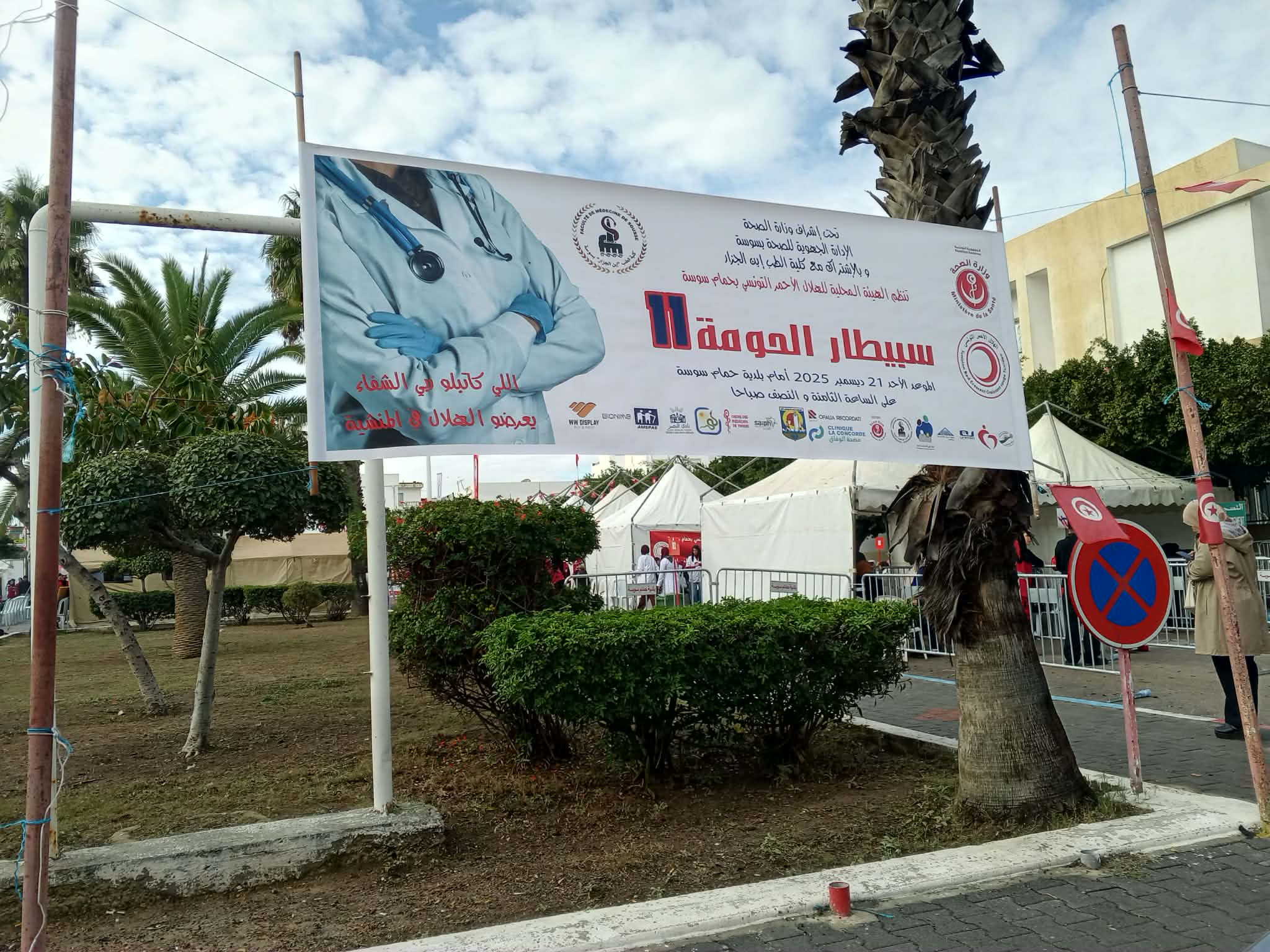 نظمت الهيئة المحلية للهلال الأحمر التونسي بحمام سوسة يوم أمس الأحد 21 ديسمبر 2025.. تظاهرة “سبيطار الحومة” في دورتها الحادية عشر (11) وذلك تحت إشراف الإدارة الجهوية للصحة بسوسة وبالإشتراك مع كلية الطب “ابن الجزار” بمدينة سوسة .. والمكان هو ساحة الفنون قبالة قصر البلدية… تحت شعار : “إلّي كاتبلو ربّي الشفاء… يعرضو الهلال في المنشية…” والمنشية هي المكان الذي أقيمت به هذه التظاهرة الصحية التثقيفية الرائدة وسط مدينة حمام سوسة.