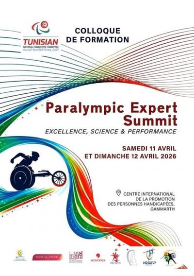 تنظم اللجنة الوطنية البارالمبية التونسية يومي 11 و12 أفريل بالمركز الدولي للنهوض بالأشخاص ذوي الإعاقة بقمرت ملتقى خبراء التميز الرياضي البارالمبي بمشاركة نحو 120 من المختصين من مدربين وطلبة وباحثين في الطب وعلوم الرياضة.