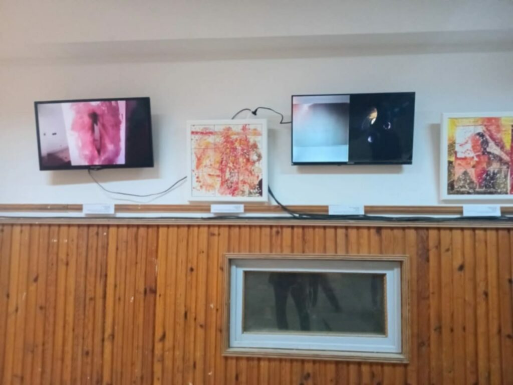 أما العمل الثاني “خارج من الجدار” فقد عكس التفاعل مع المادة الطينية كرمز للتحرٌر من القيود المادية والرمزية، من خلال تفاعل اليد مع المادة ثم تطوٌر شكل الجسد، الذي يبدأ بالخروج من الجدار ومن الطين الذي يحيط به، ليشمل ألوانًا معبرة تبرز قوة التطور والتحول، من الأزرق والتركيوازي إلى الأحمر، مما يعكس مراحل التحرر والشعور بالوجود في حين تراوح لوحة “الوجوه الخزفية” ألقها بين تفاصيل صور معبرة للعوالم الداخلية للجسد الأنثوي، حيث يظهر الجسد أو جزء منه في إطار خزفي يٌحاَكي عملية التدمير والتجديد المستمر.