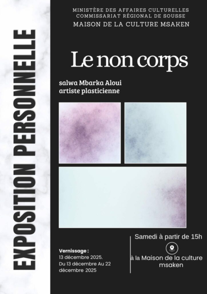 مع العلم ان معرض ” اللاٌجسد ” يتواصل إلى غاية 22 ديسمبر برواق دار الثقافة مساكن فاتحا فرصة تاريخية لروادها من اجل الاستمتاع بمحتوياته.