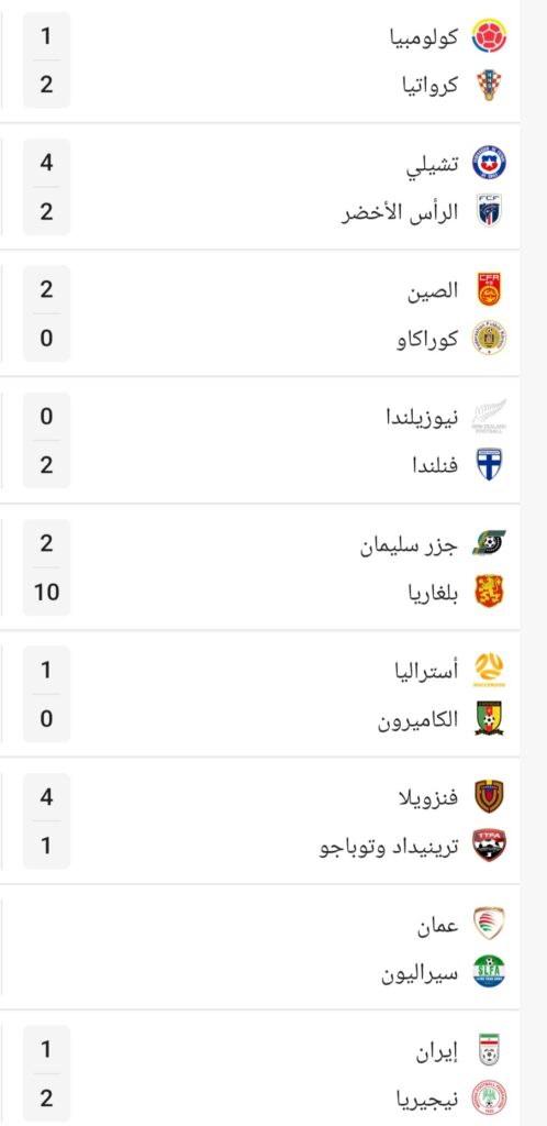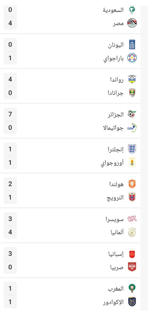 جرت يوم أمس عدة مباريات دولية ودية كانت نتائجها كما يلي: