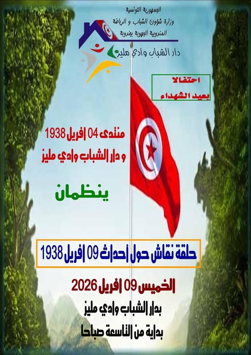 بمبادرة منه نظم “منتدى 04 أفريل 1938 الذاكرة والتاريخ” الذي يشرف عليه الاستاذ والفاعل الثقافي شرف الدين قاسمي صباح اليوم 9 افريل الجاري وبالشراكة مع كل من دار الشباب وادي مليز ونادي التربية المدنية بمعهد وادي مليز والمكتبة العمومية ودار الثقافة بالمكان احتفالات بالذكرى 88 لعيد الشهداء حلقة نقاش أثث فقراتها الدكاترة والاساتذة الطاهر الرحوي ومحمد غماري الوصلي والحبيب المعزاوي وحسونة المدفعي وعلي القارشي وكمال العبيدي وأمية خزري من خلال مداخلات حول الحركة التحررية الوطنية ومساهمة آهالي المنطقة خاصة منذ 1936 في الحركة النضالية الوطنية ضد المستعمر الفرنسي حيث كانت أحداث 4 أفريل 1938 بوادي مليز الشرارة الاولى لأحداث 9 افريل 1938 الوطنية التي طالبت باستقلال بلادنا ووبرلمان تونسي.