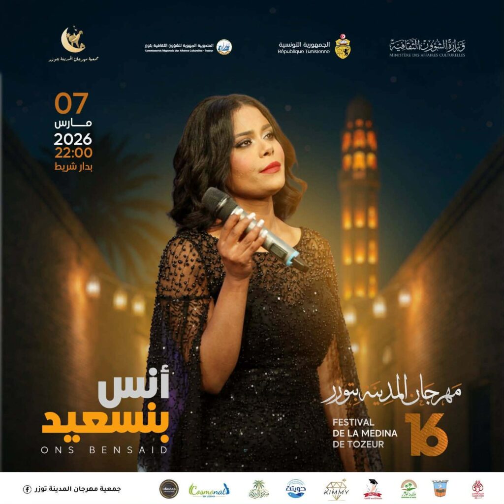 باحت فعاليات الدورة السادسة عشرة لمهرجان المدينة بتوزر منذ يومين بتفاصيل برمجة عروضها الرمضانية والتي ستنطلق مساء اليوم السبت 7 مارس لتتواصل إلى غاية يوم السبت 14 مارس. وقد أعدت جمعية المهرجان بإشراف ودعم المندوبية الجهوية للشؤون الثقافية بتوزر وعديد الداعمين كولاية توزر وبلديتها وغيرهما من المؤسسات الخاصة برمجة ثرية ومتنوعة، جمعت في عروضها بين ما هو فني طربي وموسيقى شبابي وفني صوفيا روحاني يتماشى وطبوع شهر رمضان المعظم إلى جانب الفعاليات الموجهة للاطفال والعائلات..