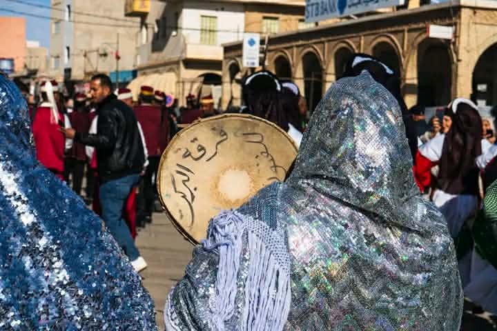 وبالتوازي مع تواصل فعاليات ملتقى الواحة للخط العربي والنحت على خشب النخيل والذي يشهد ولايزال منذ يوم إفتتاحة يوم الجمعة الماضي مواكبة جماهيرية مكثفة لأهل الإختصاص و المواطنين وضيوف الجهة تونسيين وسياح أجانب وذلك إعتبارا لثراء ورشاته وتنوع أغراضه ومعروضاته، إنتظمت صباح اليوم الأحد 28 ديسمبر وهو اليوم الثالث للمهرجان “خرجة المحفل” التي إنطلقت من أمام “دار زينة” للصناعات التقليدية بالهوادف ثم جابت أهم الشوارع الرئيسية والساحات العامة وسوق مدينة توزر وصولا إلى ساحة الولاية، وقد أحيت وأثثت هذه “الخرجة” الفرق الفلكلورية والصوفية والطرقية وكوكبة من الفرسان والطبالة والبنڨة، قدمت مشهدية عرسية متكاملة جسدت عادات وتقاليد أهل الجريد في مواكب الأعرس.