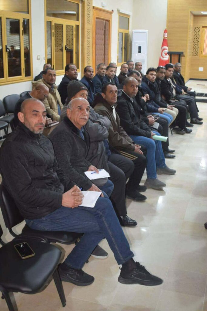 وإثر ذلك قدم رياض أحمدي ممثل مكتب الدراسات برنامج الدعم الفني والتنظيمي المزمع توفيره لفائدة المشروع بما يضمن حسن التنفيذ ومرافقة مختلف المتدخلين والمتضمن خاصة تعزيز القدرات العملياتية لمندوبيات التنمية الفلاحية والمجامع المائية وتحسين الممارسات الفلاحية والرفع من نجاعة منظومة الري على مستوى المستغلة الفلاحية، إلى جانب تعزيز المشاركة الفاعلة والشاملة لمختلف الأطراف المتدخلة في المشروع، كما تطرق رياض أحمدي ممثل مكتب الدراسات إلى الأنشطة والتدخلات التي ستنجز لتحقيق الأهداف المذكورة .