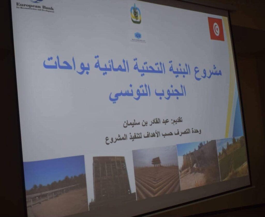 وقدم بلقاسم عمّار المندوب الجهوي للتنمية الفلاحية بتوزر بسطة شاملة وضافية تعلقت بمراحل إنجاز هذا المشروع الرائد والأهداف المرجوة منه، ومن جهته قدم عبد القادر بن سليمان رئيس وحدة التصرف حسب الأهداف لتنفيذ هذا المشروع عرضا مرئيا حول مكوّنات المشروع ومراحل الأشغال والإحاطة الفنية وأهداف المشروع المفصلة والنتائج المنتظرة منه والذي يتضمن جملة من العناصر التي تخص ولاية توزر والتي تتمحور أساسا في إحداث وتعويض 7 ٱبار وسدم ٱبار وتهيئة وتركيز 3 رؤوس ٱبار. وإحداث وتهيئة 3 مبردات وتهيئة شبكات الري على مساحة 543 هكتارا وتهيئة شبكات التجفيف على مساحة 561 هكتارا.