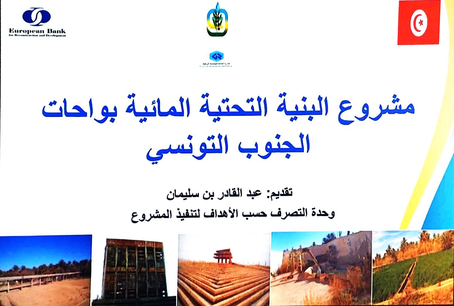 وقدم بلقاسم عمّار المندوب الجهوي للتنمية الفلاحية بتوزر بسطة شاملة وضافية تعلقت بمراحل إنجاز هذا المشروع الرائد والأهداف المرجوة منه، ومن جهته قدم عبد القادر بن سليمان رئيس وحدة التصرف حسب الأهداف لتنفيذ هذا المشروع عرضا مرئيا حول مكوّنات المشروع ومراحل الأشغال والإحاطة الفنية وأهداف المشروع المفصلة والنتائج المنتظرة منه والذي يتضمن جملة من العناصر التي تخص ولاية توزر والتي تتمحور أساسا في إحداث وتعويض 7 ٱبار وسدم ٱبار وتهيئة وتركيز 3 رؤوس ٱبار. وإحداث وتهيئة 3 مبردات وتهيئة شبكات الري على مساحة 543 هكتارا وتهيئة شبكات التجفيف على مساحة 561 هكتارا.