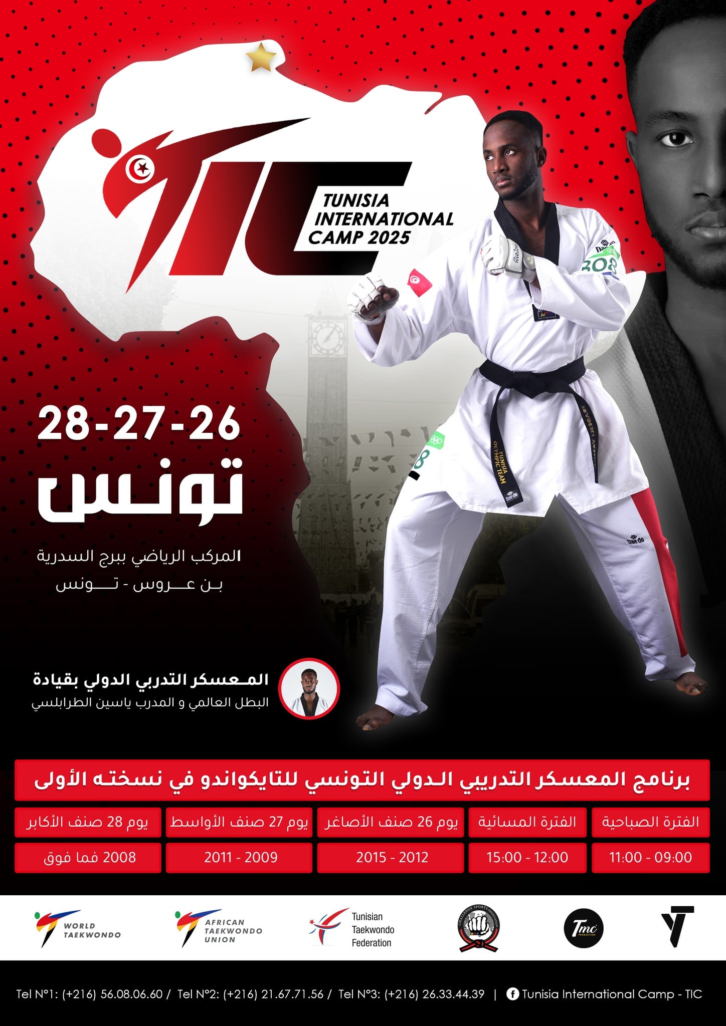يحتضن المركب الرياضي ببرج السدرية ببن عروس النسخة الأولى للمعسكر التدريبي الدولي التونسي للتايكواندو وذلك من 26 الى 28 ديسمبر الجاري بقيادة المدرب والبطل العالمي ياسين الطرابلسي وسيجرى المعسكر التدريبي عبر مرحلتين حيث سيخصص يوم 26 ديسمبر إلى صنف الأصاغر من مواليد من 2012 إلى 2015، أما يوم 27 ديسمبر فسيخصص إلى صنف الأواسط المواليد من 2009 إلى 2011 واليوم الأخير 28 ديسمبر سيخصص إلى صنف الأكابر المواليد من سنة 2008 وما فوق، وسيستفيد المشاركون من الخبرة الكبيرة والطويلة للمصارع السابق في المنتخب الوطني السابق في التايكواندو وهو المدرب الحالي لمنتخب لوكسمبورغ.