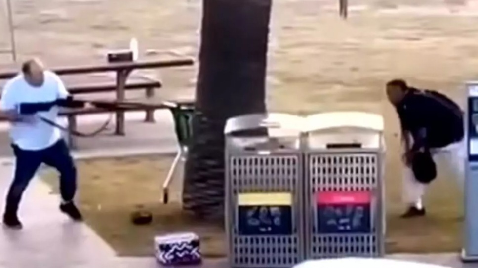 وتُظهر لقطات متداولة على مواقع التواصل الاجتماعي رجلاً يرتدي قميصاً أبيض في ساحة لوقوف السيارات يركض باتجاه رجل يرتدي قميصاً داكناً يحمل بندقية، قبل أن ينقضّ عليه من الخلف، وينتزع البندقية من يديه، ويوجّه السلاح نحوه.