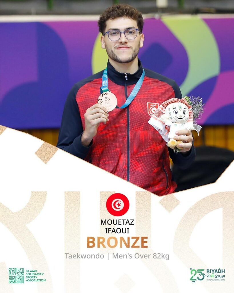 حصيلة ميداليات المشاركة التونسية بعد نهاية منافسات اليوم العاشر منذ افتتاح دورة ألعاب التضامن الإسلامي بالرياض المملكة العربية السعودية، الأثنين 17 نوفمبر 2025.