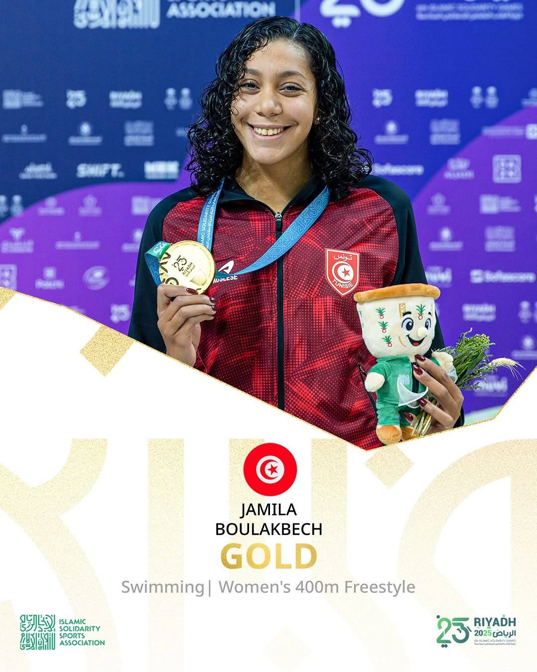 - ذهبية : جميلة بولكباش، 400 سباحة حرة