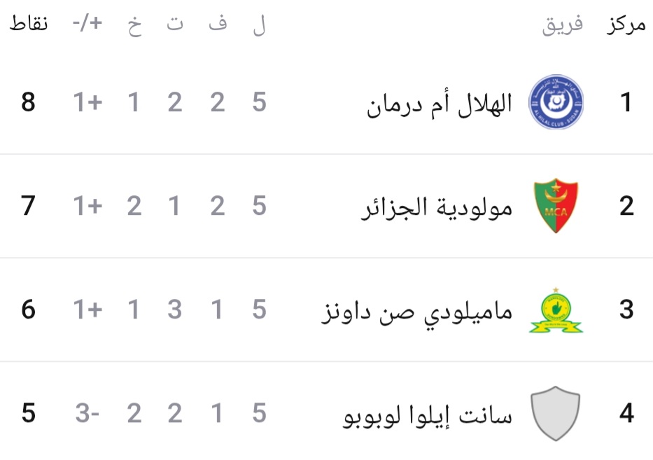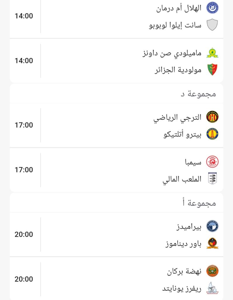 فيما يلي برنامج مباريات اليوم للجولة الأخيرة من مرحلة المجموعات لرابطة الابطال الافريقية: الترتيب تصفّح المقالات الرابطة المحترفة الأولى/الدفعة الأولى: النجم يعود بانتصار اللحظات الأخيرة، والبقلاوةرغم الفوز تركت أنصارها في حيرة