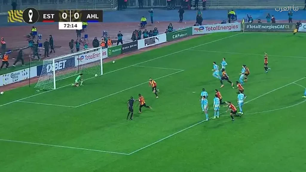 وعلى إثر هجوم ترجي وتوزيعة عرضية في مناطق جزاء الأهلي أعاد محمد هاني الكرة لحارسه تبين بعد العودة إلى الفار إلى أن مدافع الأهلي استعان بيده في توجيه الكرة لحارس مرماه فكانت ضربة الجزاء التي نجح في تجسيمها محمد أمين توقاي في الدقيقة 73 ليفتح باب التسجيل ويمنح الأسبقية للترجي الذي كان في مقدوره مضاعفة الحصيلة عن طريق دانهو وخاصة يان ساس الذي كان في موقع مناسب جدا لها الشباك لكن كرته مرت عالية رغم توجيه على بعد بدعة أمتار من الحارس.
