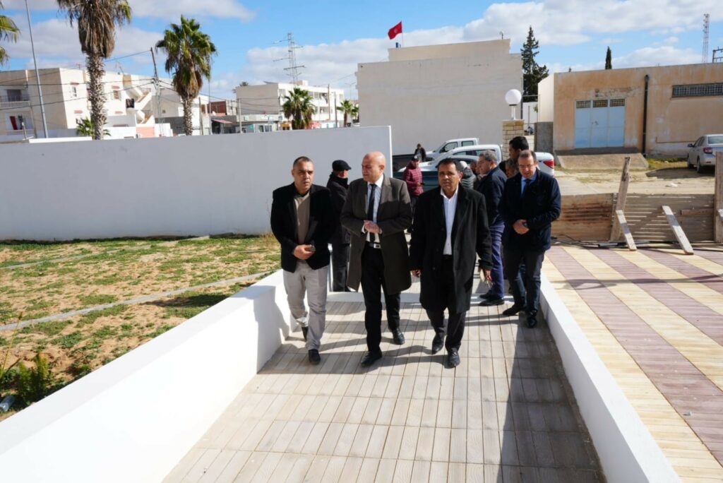 شهدت معتمدية حاجب العيون مؤخرا وتحديدا يوم الاثنين 12 جانفي الجاري زيارة ميدانية لوالي القيروان ذاكر البرقاوي في اطار متابعة الوضع التنموي للمشاريع العمومية المبرمجة ومدى تقدم سيرها وكان مرفوقا بالكاتب العام الولاية ومعتمد حاجب العيون ونائب مجلس الشعب ورئيس دائرة المجلس ورئيس دائرة الشؤون البلدية وعدد من الاطارات الجهوية والمحلية والمصالح الفنية واعضاء المجلس المحلي للتنمية حيث شمل برنامج الزيارة مقر المعتمدية والاستماع الى مشاغل الاطارات والاعوان ومعاينة الأشغال المنجزة بالمطعم المركزي المدرسي بالمعهد الثانوي علي الزواوي بحاجب العيون بكلفة قدرت بـ3٫7 م د وهو في مرحلة التجهيز قبل التسليم والاستغلال، الى جانب معاينة عدد من المشاريع البلدية المبرمجة على غرار تهيئة وصيانة وتعبيد الطرقات بحي السعادة وجزء من وسط المدينة وجزء من حي الرقي بكلفة قدرت بـ3٫7 م د الي جانب تهيئة منتزه العائلة والطفل.. كما تمت معاينة اشغال بناء الحي التجاري الذي ناهزت كلفته 530 أ د مع معاينة اشغال تطوير دار الشباب إلى الجيل الثاني بكلفة قدرت بـ380أ د اضافة الى معاينة وضعية الملاعب الرياضية التي تحتاج الى التهيئة والصيانة… هذا إلى جانب زيارة تفقد الى العديد من المقرات الأمنية والاطلاع على النقائص إلى جانب زيارة مقر الحماية المدنية.