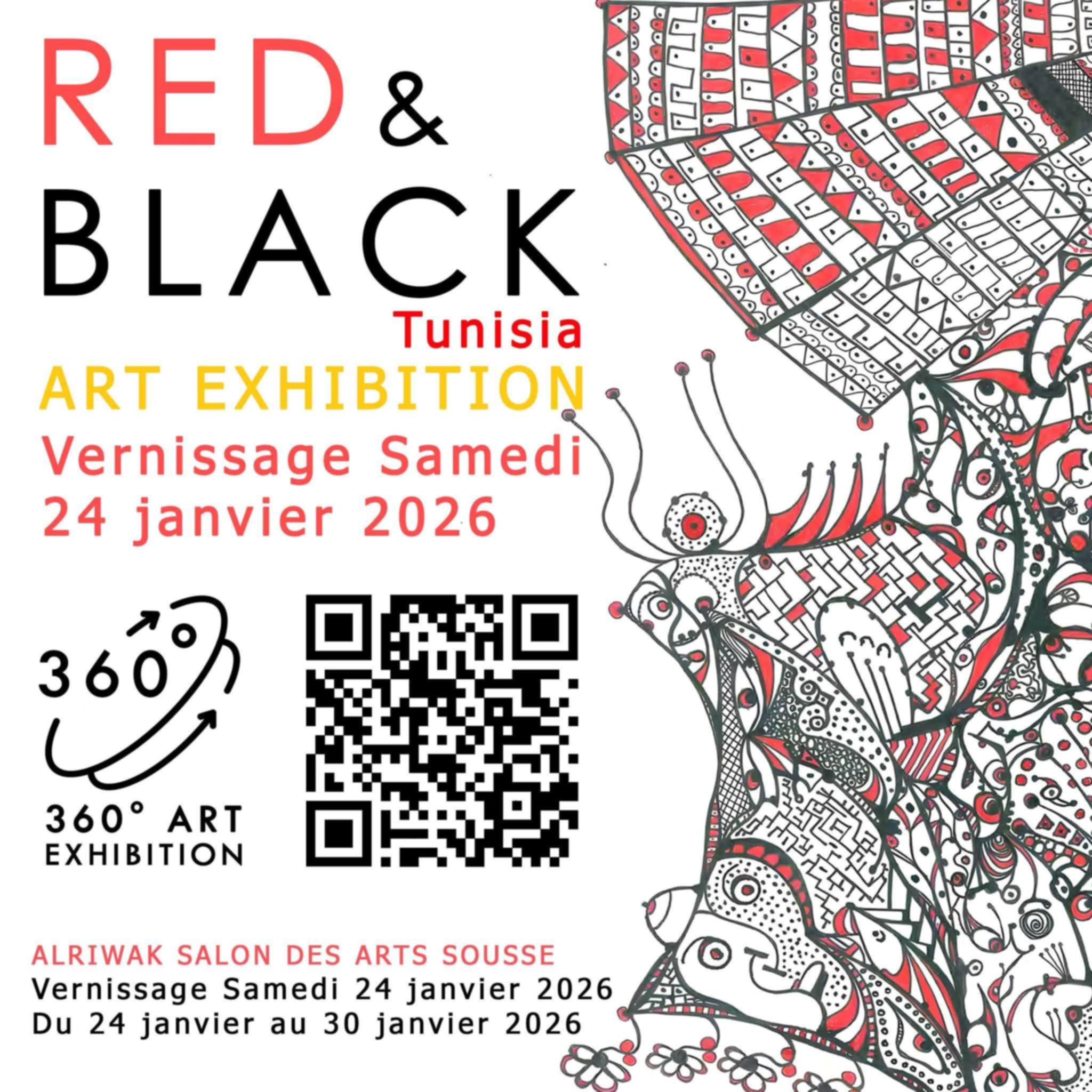 ضرب صالون الرواق بسوسة جوهرة ابتداء من السبت 24 جانفي 2026 موعدا مع تدشين المعرض الشخصي للفنان التشكيلي الفلسطيني أحمد عبد الرؤوف أبو معيلق تحت عنوان “أحمر وأسود” في مستوى 360 درجة.