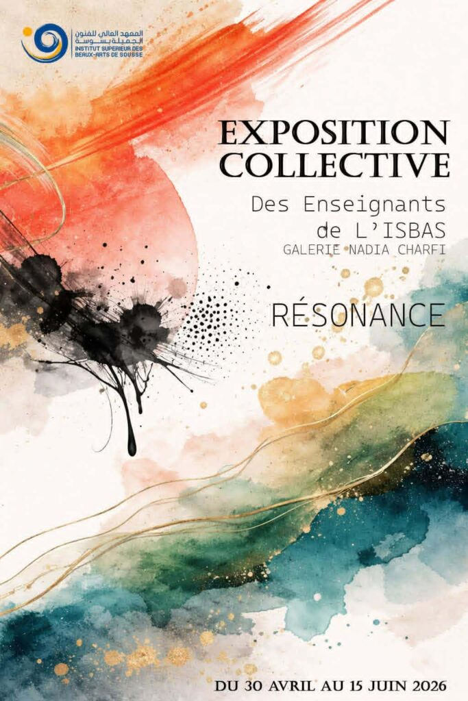 في اطار انشطته الموسمية الداعية إلى الإنفتاح والتعمق في التجارب الإبداعية في الفن التشكيلي بمختلف مدارسه وتقنياته، يدعو القائمون على تسيير وإدارة المعهد العالي للفنون الجميلة بسوسة صباح يوم الخميس 30 أفريل 2026 لاكتشاف محتويات المعرض التشكيلي الجماعي بعنوان “صدى” بإمضاء أعضاء هيئة التدريس في المعهد العالي للفنون الجميلة بسوسة، وذلك برواق وقاعة العرض “نادية شرفي” بفضاء المعهد ابتداء من الساعة الحادية عشر (11.00).